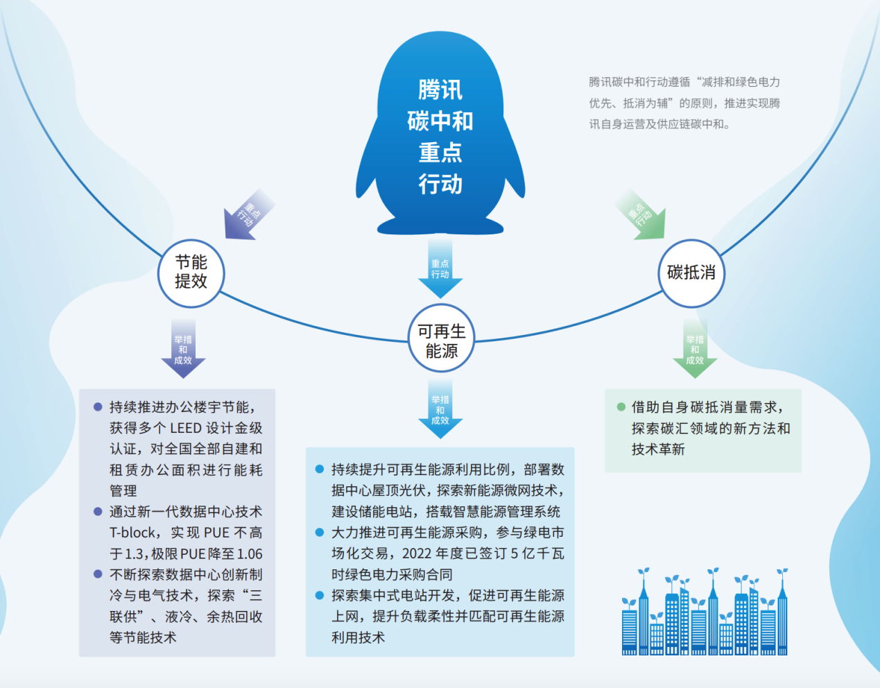 在环保方面,腾讯于2022年初发布了碳中和路线图,自愿承诺不晚于2030年实现自身运营及供应链的全面碳中和,并实现100%绿色电力使用。与此同时,腾讯还应用自身的技术、产品和平台的能力,助力消费者践行低碳生活以及产业转型低碳运营。