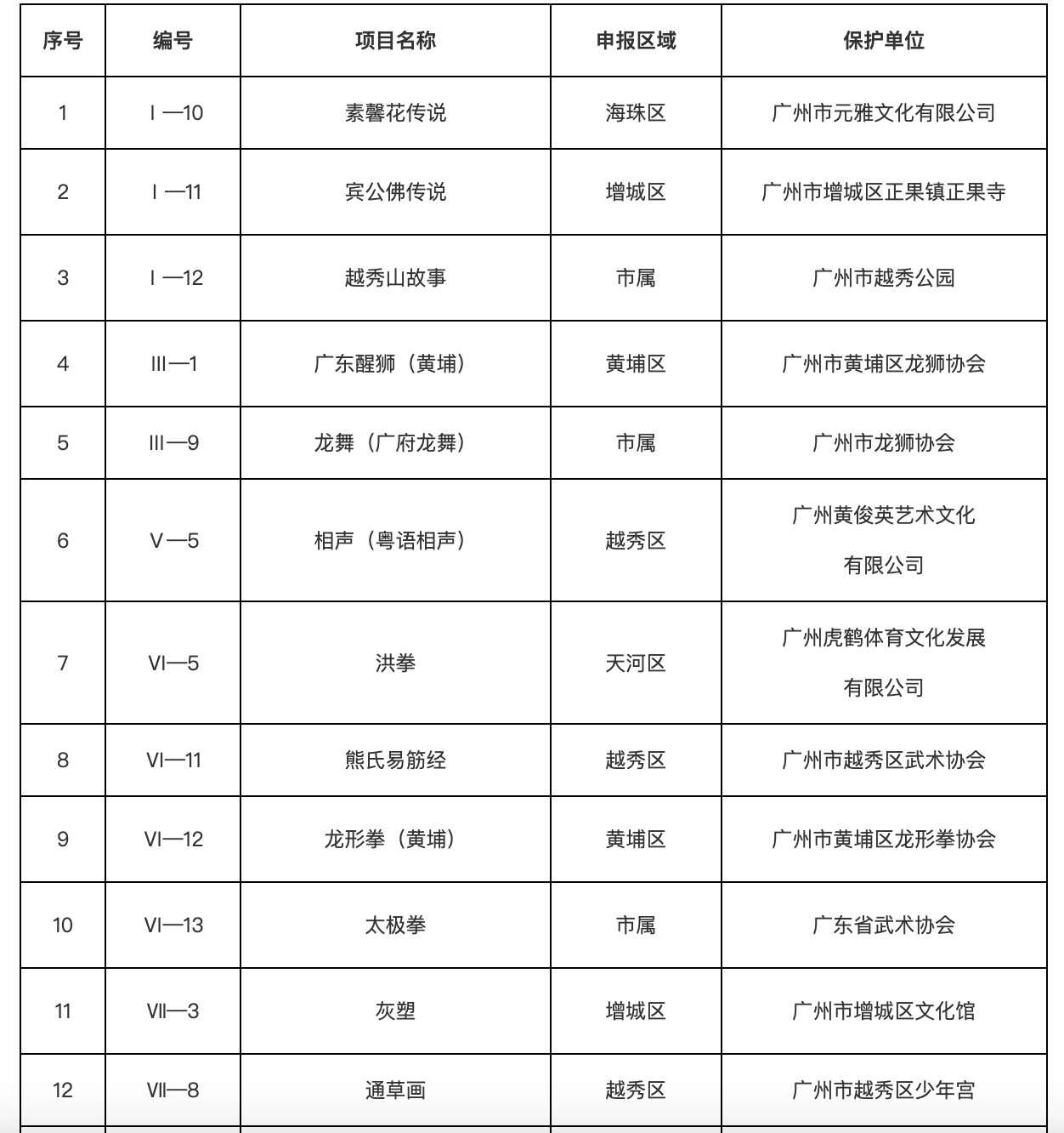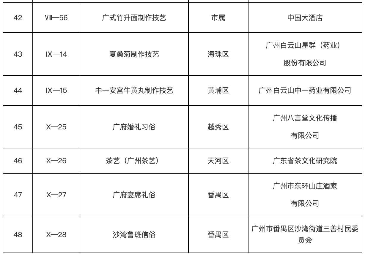据悉,今年10月,广州市人民政府公布了第八批市级非物质文化遗产代表性项目名录。为做好广州市非物质文化遗产代表性项目保护工作,明确和落实保护主体及责任,根据《广东省非物质文化遗产条例》《广州市非物质文化遗产保护办法》的相关要求,经过推荐、评审和公示等程序,认定该48家单位为第八批市级非物质文化遗产代表性项目保护单位。