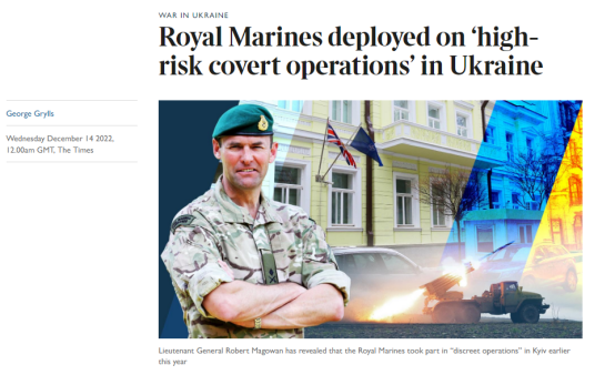 综合外媒14日报道,英国国防副参谋长、前英国皇家海军陆战队司令罗伯特·马戈万在英国海军的官方出版物“the Globe and Laurel”上首次承认,英国皇家海军陆战队曾在乌克兰参与秘密行动。