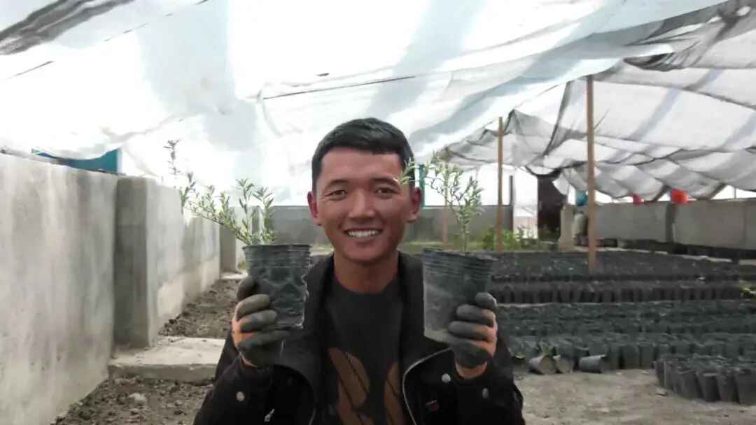 这一株株生长在营养杯里的沙棘幼苗,苍翠欲滴。四年前,扎西次仁从西藏农牧学院毕业,回到家乡,办起了这个以培育沙棘苗为主的苗圃基地。这两年,扎西次仁的潜心研究获得了初步成果。经过实验,这种通过营养杯育苗并进行整体移栽的方式,可以极大提高沙棘苗的成活率。