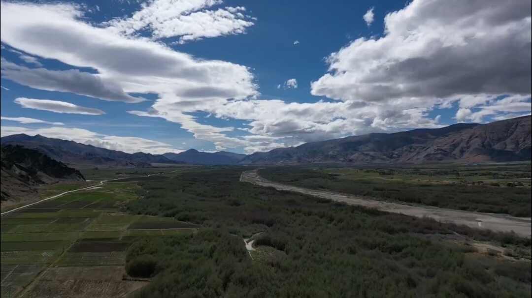 隆子河水缓慢流淌,河谷两岸绵延40多公里、占地7.6万亩的这片沙棘林,是经世界纪录认证的“世界最大人工种植连片沙棘”。从上个世纪六十年代起,隆子人民历经半个多世纪的艰苦奋斗,在隆子河两岸建起了这条造福百姓、福泽后代的“生态长城”。它的源头,就在忙错村的河滩上。