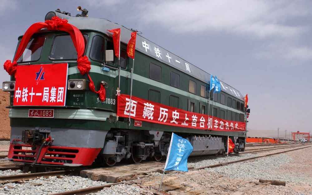 ↑2004年3月23日,在海拔4704米的青藏铁路海拔最高铺架基地——西藏安多铺架基地上,中铁十一局1083号东风4型内燃机车向雪域高原缓缓驶来。这标志着西藏历史上出现了第一台铁路机车。