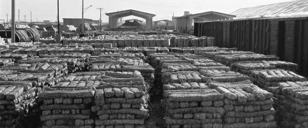 ↑ 1989年2月,湖南、云南、四川等省专门为西藏人民生产的民族砖茶堆放在青海省格尔木火车站,等待西藏运输车队前来装运。