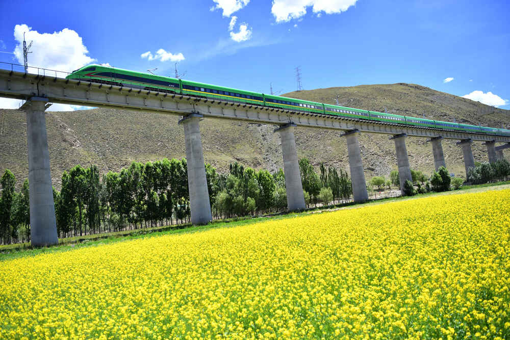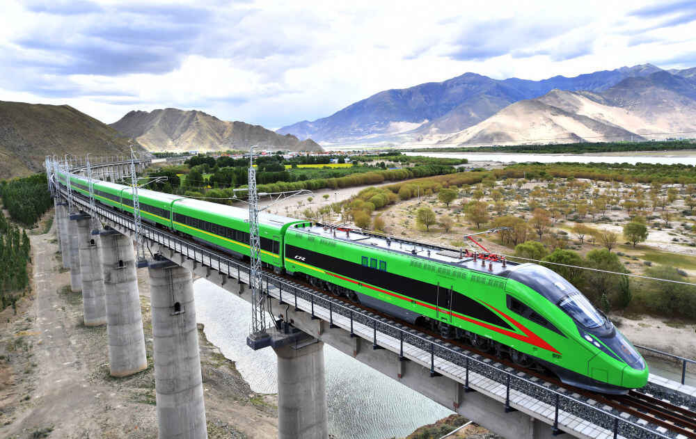 2021年6月25日,全长435公里、设计时速160公里的拉林铁路建成通车,西藏首条电气化铁路建成,同时复兴号实现对31个省区市全覆盖。