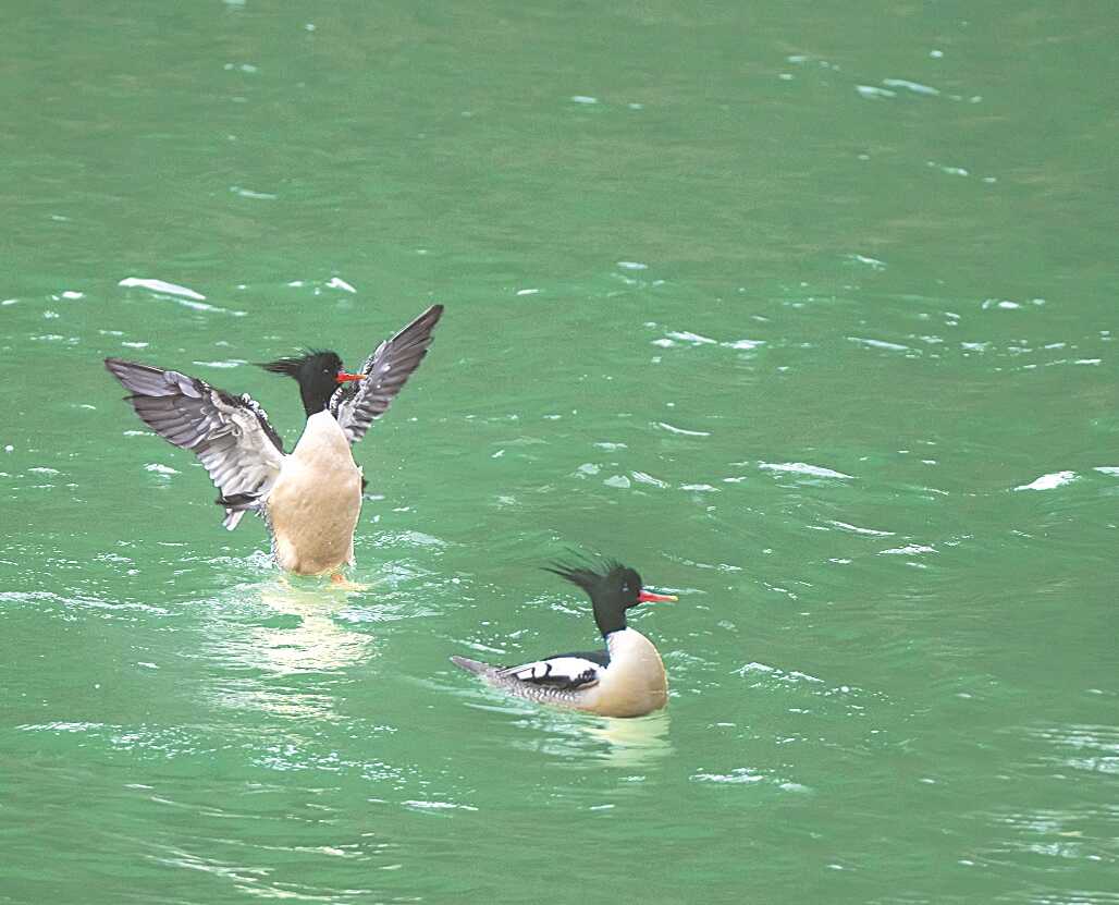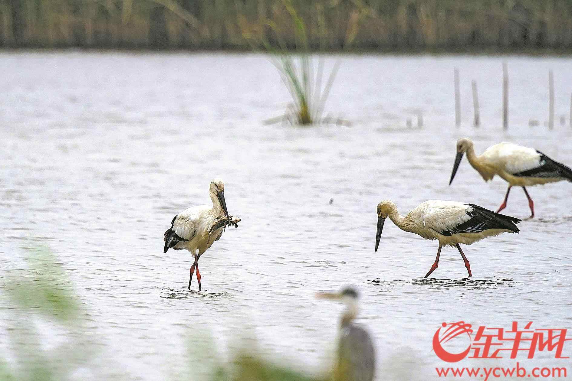 12月16日的《羊城晚报》A5版刊发了题为《“鸟界国宝”现身南沙湿地》的报道,呈现了13只国家一级保护动物、有“鸟界国宝”之称的东方白鹳在广州南沙湿地觅食的图片;A8版刊发了题为《“鸟中大熊猫”中华秋沙鸭现身韶关》的消息,展示了被誉为“鸟中大熊猫”的国家一级保护动物中华秋沙鸭在广东韶关活动的身影。