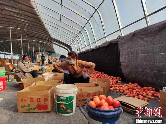 图为工人正在对采摘的西红柿进行分拣装箱。 喇小飞 摄
