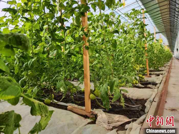 图为采摘棚中快要成熟的西红柿。 喇小飞 摄