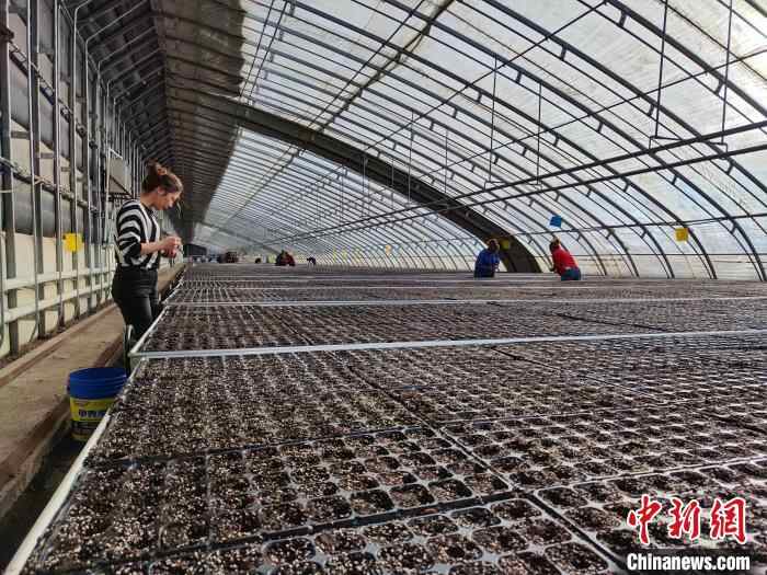 图为工人检查蔬菜出苗情况。 喇小飞 摄