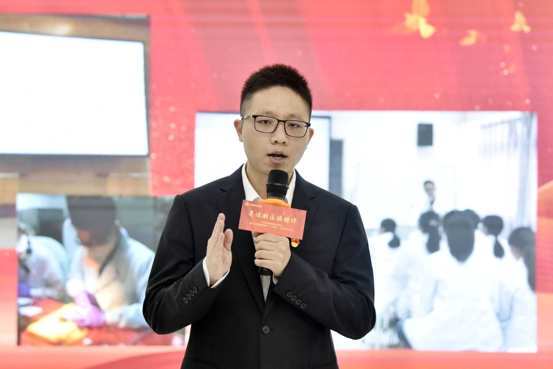 广州好人、广州医科大学附属第五医院呼吸与危重症医学科医生李德富,是奋战在最前线医护人员的代表。他以《逆风而动向光而行》为题,讲述了三年来他和同事们逆行奉献的故事。2020年,李德富主动报名奔赴武汉,在华中科技大学附属协和医院西院区ICU奋斗60多天,以实际行动彰显了一名共产党员、一名医者的担当作为。与此同时,作为一名青年医学教师,他还担负本科生的教学工作。李德富说,在疫情面前舍“小家”护“大家”,本身就是医护人员的职责所在。