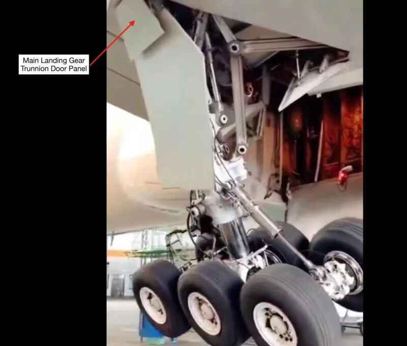 但这次,情况不同。作为MH370客机左侧机翼上的主起落架的一部分,本次发现的起落架耳轴门部件,在起落架收起时呈闭合状态,起落架放下时呈打开状态。而该碎片的损伤状况是,从内侧到外侧有四个“几乎平行的、极其有力的穿透切口”。