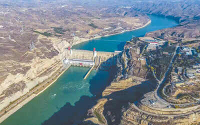 万家寨水利枢纽位于黄河北干流托克托至龙口峡谷河段,是黄河中游规划梯级开发的第一个大型水利枢纽工程,也是山西省引黄入晋工程的龙头工程和北京市从北线调水的备用水源地。1998年11月实现首台机组并网发电。设计年平均发电量27.5亿千瓦时,设计年供水量14亿立方米,其中向山西省引黄工程供水12亿立方米,向内蒙古自治区准格尔旗供水2亿立方米,在服务黄河治理开发、流域经济社会发展和沿黄两岸人民群众生活水平提高等方面具有重要意义。 图为俯瞰万家寨水利枢纽。 高晓忠摄(人民视觉)