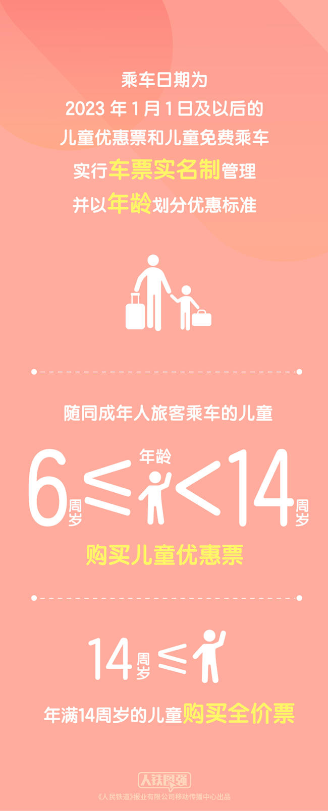 《客规》明确,乘车日期为2023年1月1日及以后的儿童优惠票和儿童免费乘车实行车票实名制管理并以年龄划分优惠标准。