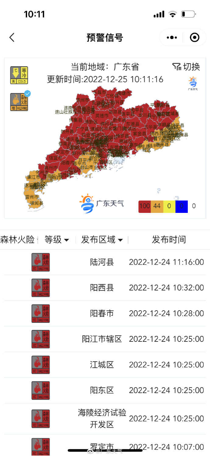 最近超长待机的干晴天气让整个广东都“干巴巴”,就在昨天(12月25日),广东已有100个市县处于最高级别的森林火险红色预警中,珠江口中部湿度普遍在40%以下。