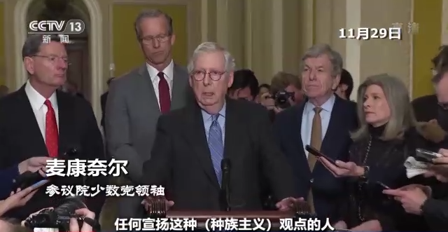 参议院少数党领袖 麦康奈尔:任何宣扬这种种族主义观点的人,在我看来都非常不应该当选成为美国总统。
