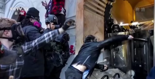 国会山警察 法侬:暴徒扯下了我的警徽,抢走了我的对讲机,把我身上的子弹抢走了。他们开始用拳头打我,还用类似金属的东西打我。