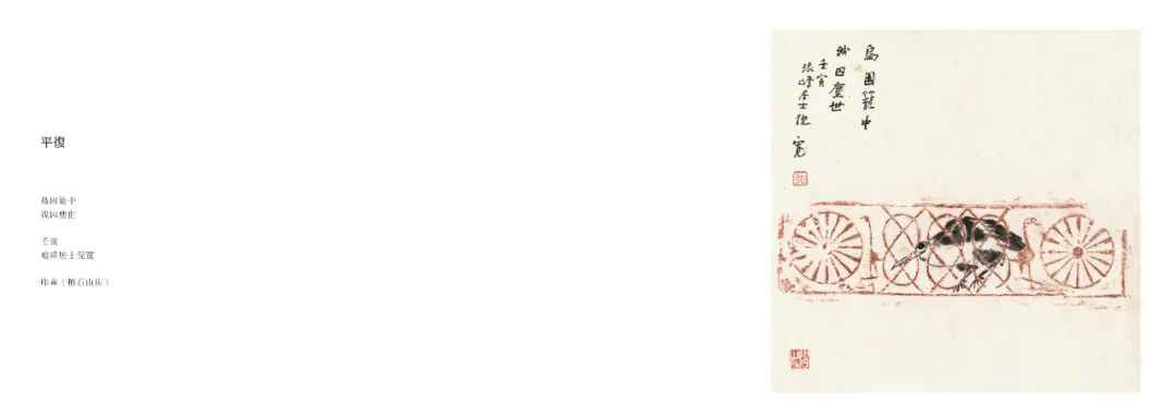 小品《平复》,鸟在拓片纹路之内,犹如囚于象形之笼中。而题之以“鸟困笼中,我囚尘世”,颇有喻指人在俗世中不知餍足,陷于自囚之牢的寓意。有形之笼与无形之牢,既具足自嘲之意,也沁出哲理之思。而自嘲也不失为平复胸中块垒,趋向心无挂碍之法。