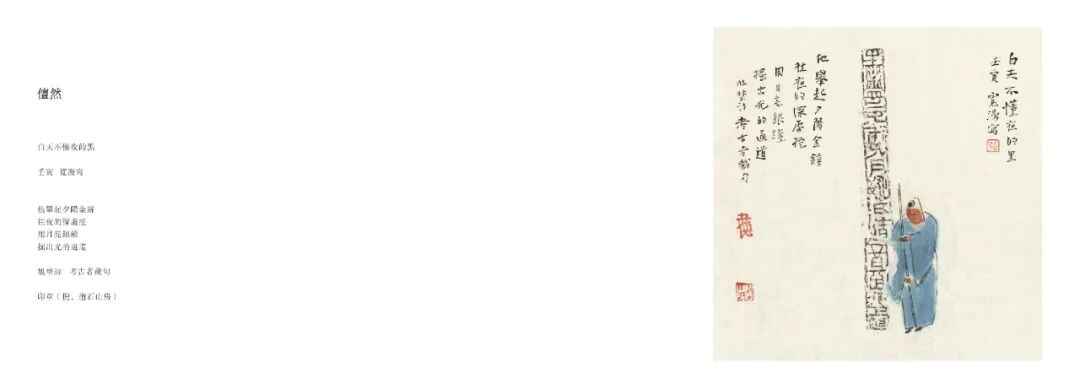 倪宽的这些拓片“补古”均有其主题,抒发作者对人生事业的思考。更有意思的是所录诗作为诗人林旭埜的哲理现代诗,不似前人多题之以格律诗,读之更是叫绝,收相互增益之美。每一幅都散发着诗歌主题与画意高度契合的独特审美意味和启迪人生的哲思。