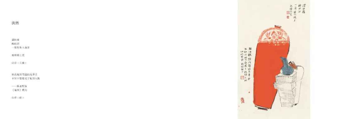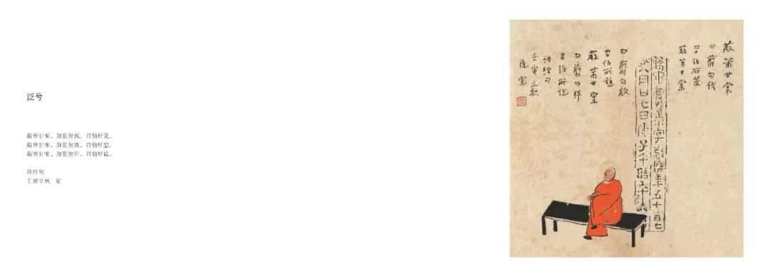 今人倪宽有《倪宽妮古录》,收“补古”近作数十幅,以古今人像、文玩与古砖瓦当拓片交互辉映,意发于古,萌生新趣。更添诗人林旭埜哲理诗句于内,嬉笑怒骂,意味深长。《倪宽妮古録》集金石味书卷气一体,兼有现代构成感,发人远想。读之赏之,目悦、耳悦、心悦。