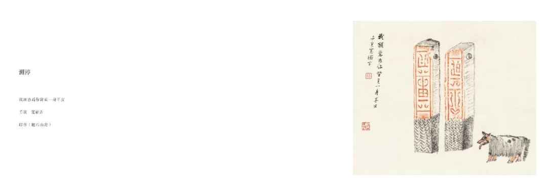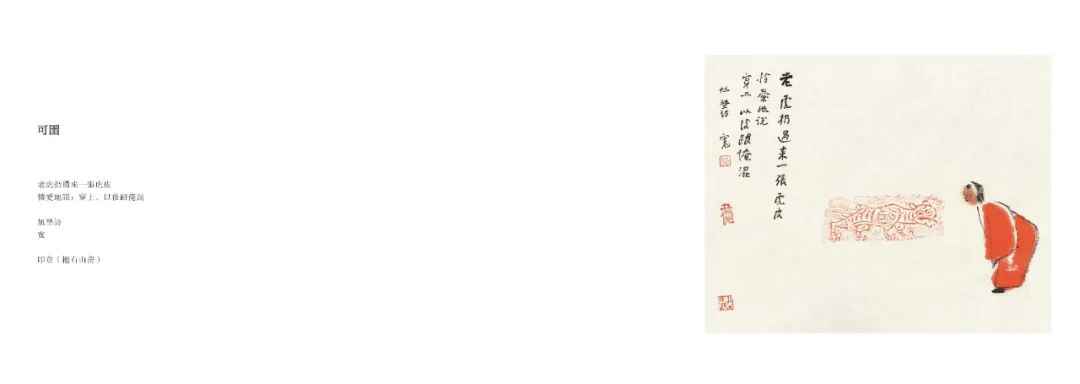 以诗文章句题拓片,前人已有先例。也有题写花枝文玩之类的博古、清供图,但以人、动物、现代事物等日常场景入题,则尚未见有先例,可视为倪宽的新创之举,值得镌记一笔。这些拓片小品以金石的侘寂之韵,人物之形神,诗歌之意味,金石味书风题跋的书卷气,成于一契,高妙融通。