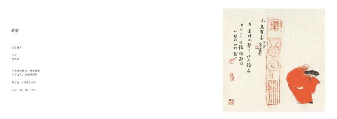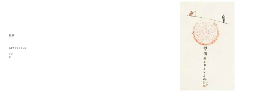 吾爱“时蒙”一画,祇见古币砖纹前,朱袍者持扇回眸踟蹰,风月之外,君子爱财,或不时为二者取舍之难所蒙。一旁,倪宽遣兴所著“见泉有喜”,泉者,或言水为财,或指智者乐水。然智者多思,是以如林旭埜《世相》言“月亮时而磨刀,时而铸币。月下之人,皆辗转难眠”。