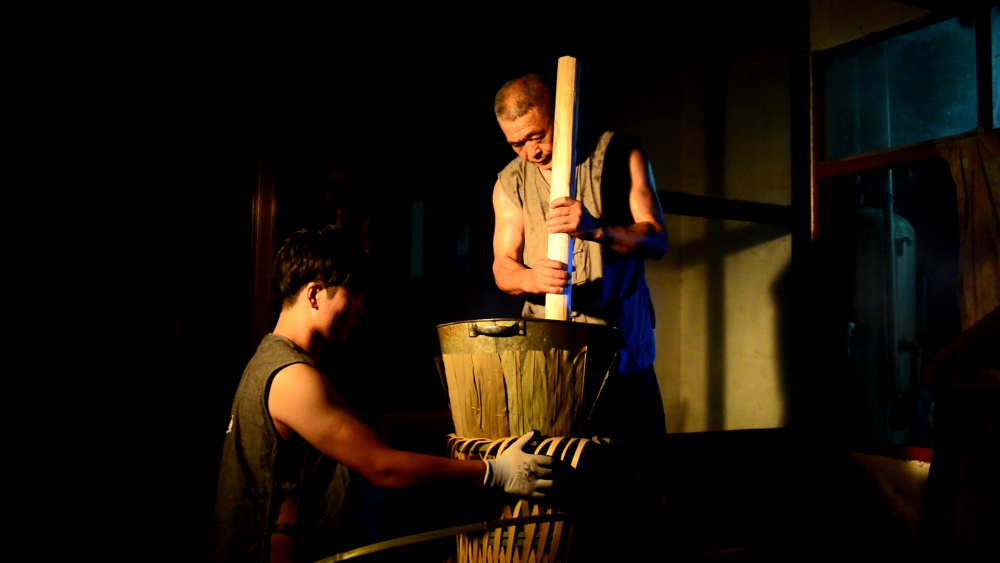 图为安化茶工在制作千两茶。(安化县委宣传部供图)