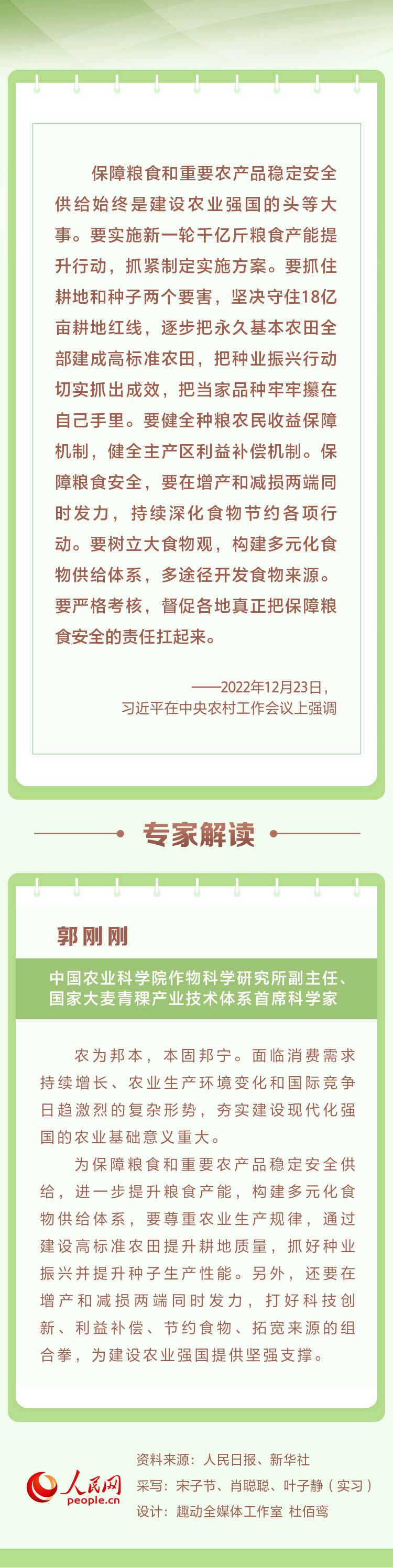 12月23日至24日,中央农村工作会议在北京举行。中共中央总书记、国家主席、中央军委主席习近平出席会议并发表重要讲话。人民网带您重温讲话要点并邀请专家进行解读。本期聚焦“保障粮食和重要农产品稳定安全供给始终是建设农业强国的头等大事”。
