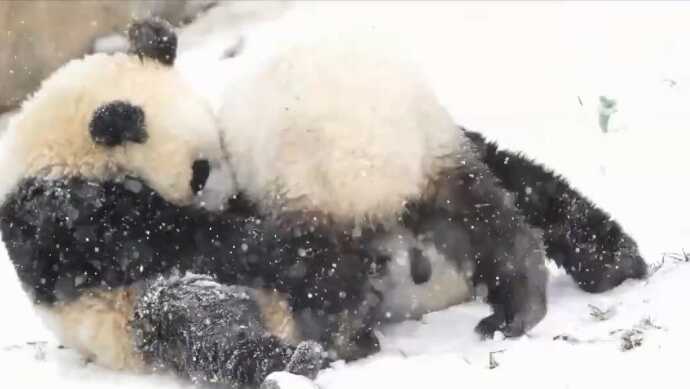 近日,秦岭大熊猫研究中心银装素裹。国宝开启撒欢模式,在雪地里奔跑打滚,还把坡道当作滑梯反复爬上↑溜下↓