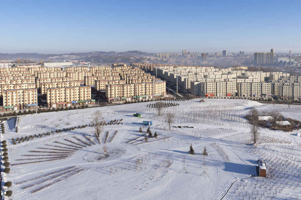 登上欣虹湖畔的平安宝塔第九层,极目远眺,从前一家一户冒着黑烟的棚户区已经被鳞次栉比的楼房取代,一个个大小不一的公园、广场镶嵌在楼群间,与白雪、蓝天、远山构成美丽画卷。