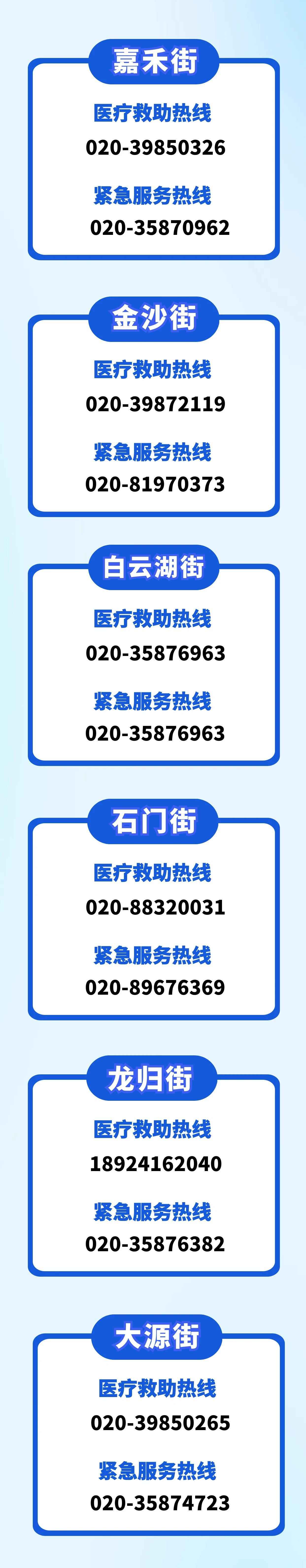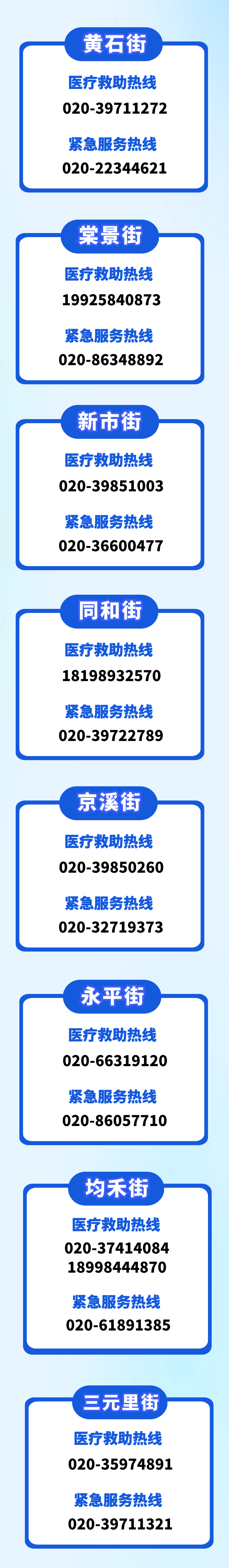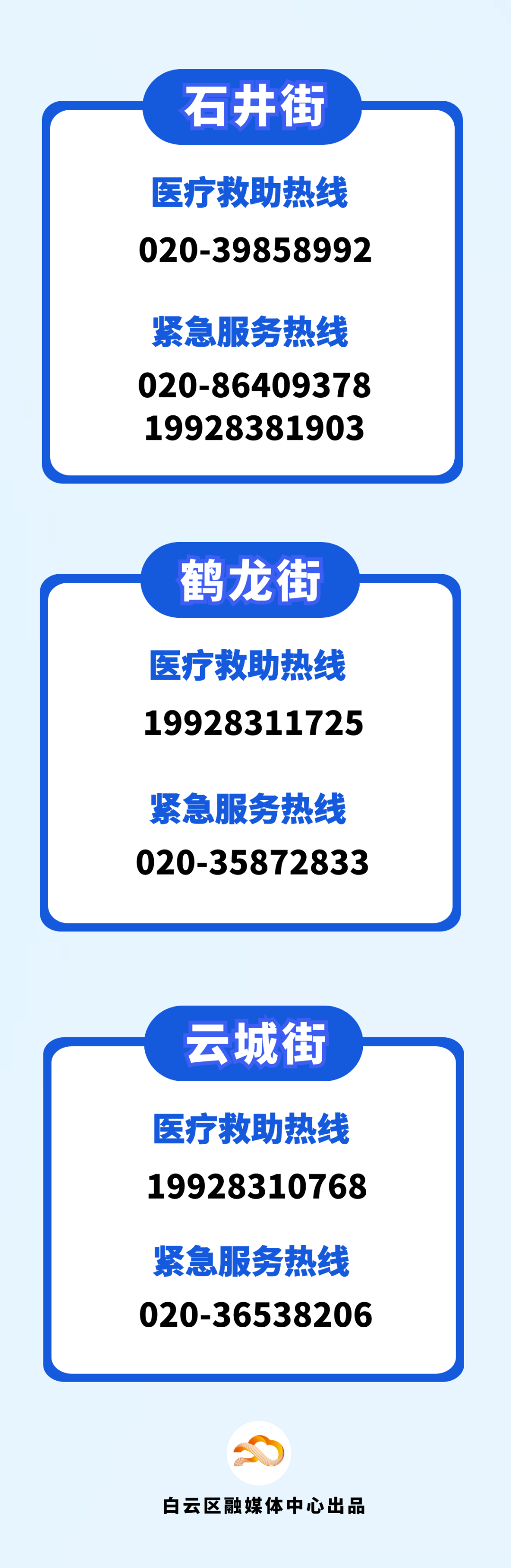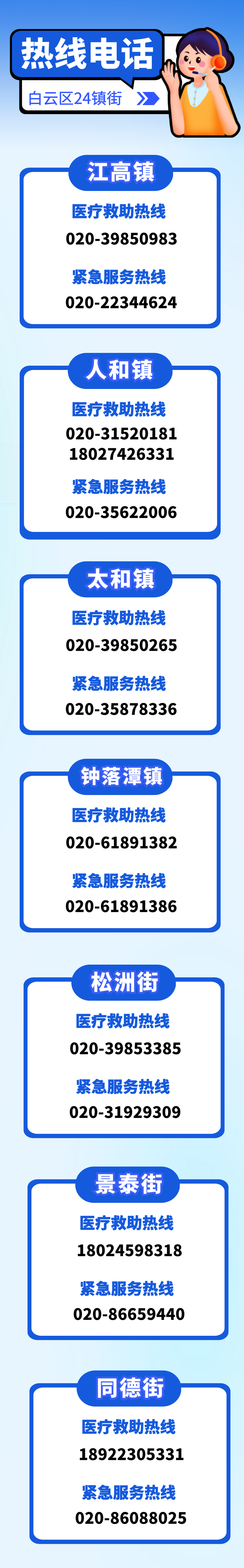 白云区各镇街开通24小时医疗救治热线、紧急服务热线