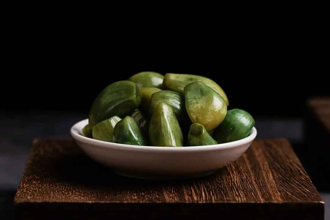腊八酒和腊八蒜的制作十分简单,腊八酒是将紫皮蒜瓣泡在黄酒或高粱酒里,封好口待春节时打开饮用,香味扑鼻,还可通血脉、暖肠胃。腊八蒜就是醋加大蒜瓣儿,但是其中门道在于米醋和紫皮蒜的调配,米醋要色淡,这样泡过的蒜色橙黄翠绿,口感酸辣适度,香中有甜。紫皮蒜瓣要小才能泡得透,这样才能又脆又香。