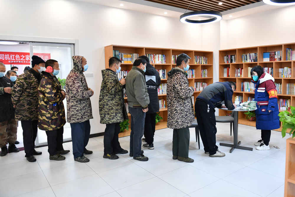 上午10点半,30多名货车司机就来到了长沙市开福区传化公路港物流园区内的“红色之家”,待现场工作人员讲解规则后,开始排队领取药品和防疫物资。