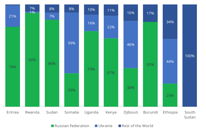 △联合国世界粮食计划署关于东非地区进口小麦比例图