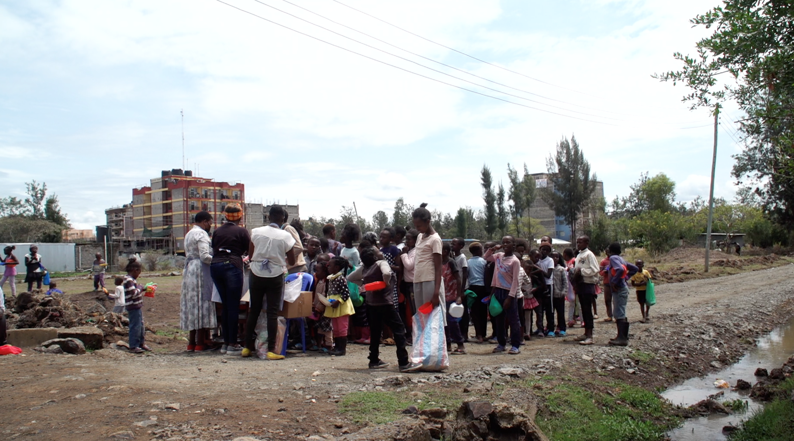 △贫民窟孩子们排队领取免费午餐