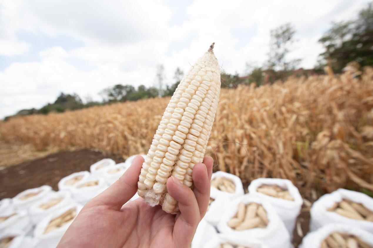 △中非联合研究中心的现代农业示范区内当地白玉米品种试种大丰收