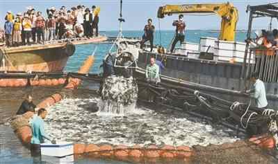 遂溪县草潭工作队帮扶金鲳鱼丰收的场面。