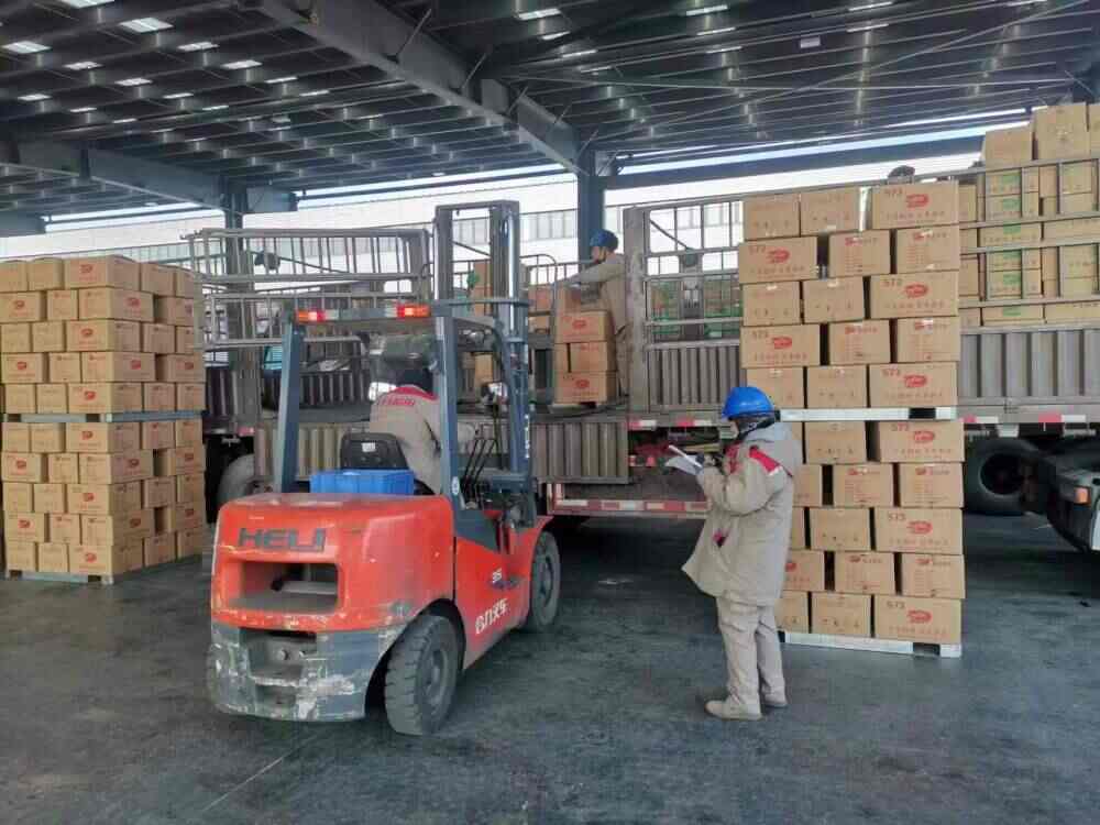 十月稻田农业科技有限公司厂区内,工人正在装货。(受访者供图)