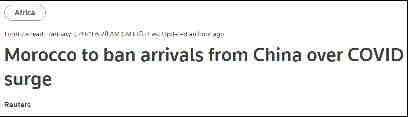 据路透社当地时间2022年12月31日报道,摩洛哥外交部当天宣布,从2023年1月3日起,所有来自中国的人员,不论国籍,皆不得入境该国,“以避免出现新的新冠病毒感染浪潮”。