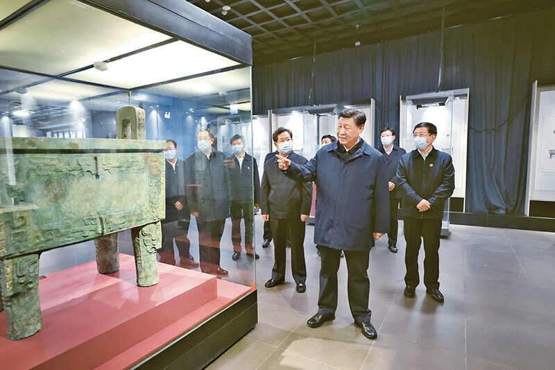 2022年10月26日至28日,中共中央总书记、国家主席、中央军委主席习近平在陕西省延安市、河南省安阳市考察。这是28日下午,习近平在安阳市殷墟博物馆考察。 新华社记者 鞠鹏/摄