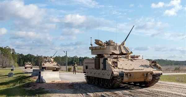 布拉德利战车是一种中型装甲战车,通常装备有25毫米机关炮和陶式反坦克导弹。战车配有履带,但比坦克更加轻便灵活,这种战车也可作为运兵车,乘载大约10个人。