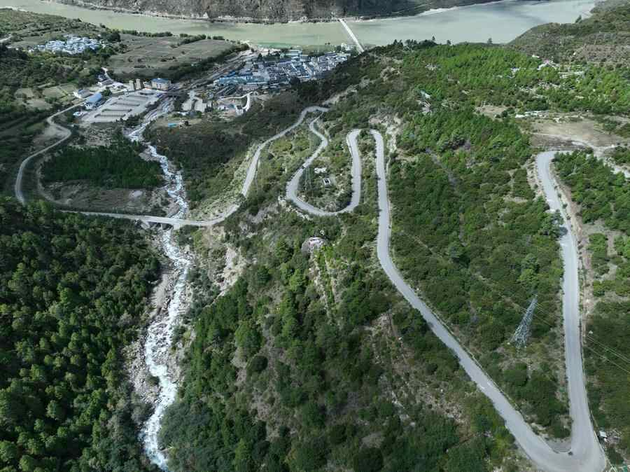 这是2022年9月30日拍摄的派墨公路派镇起点路段(无人机照片)。新华社发(董志雄 摄)
