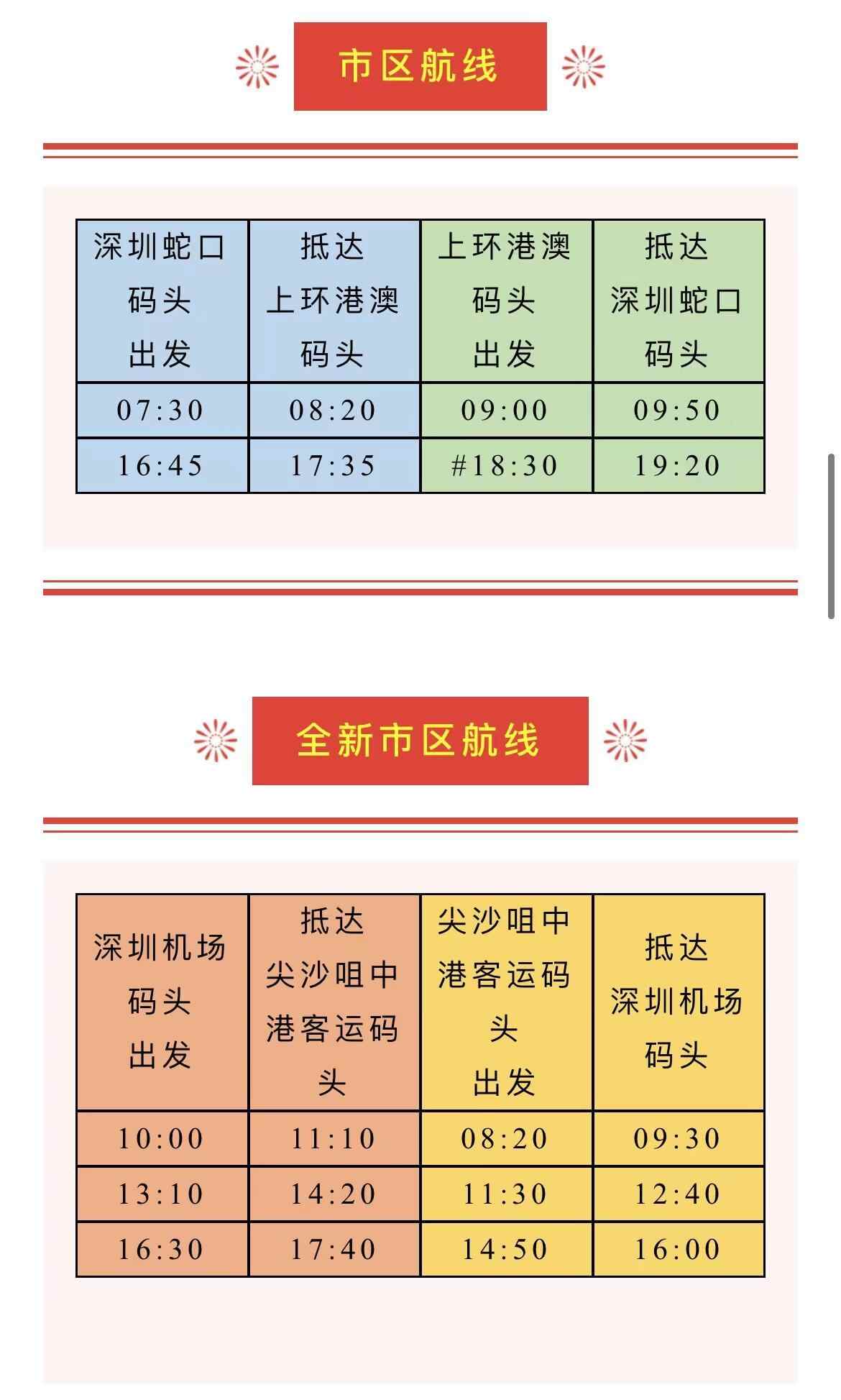 粤港跨境水上航线航班安排