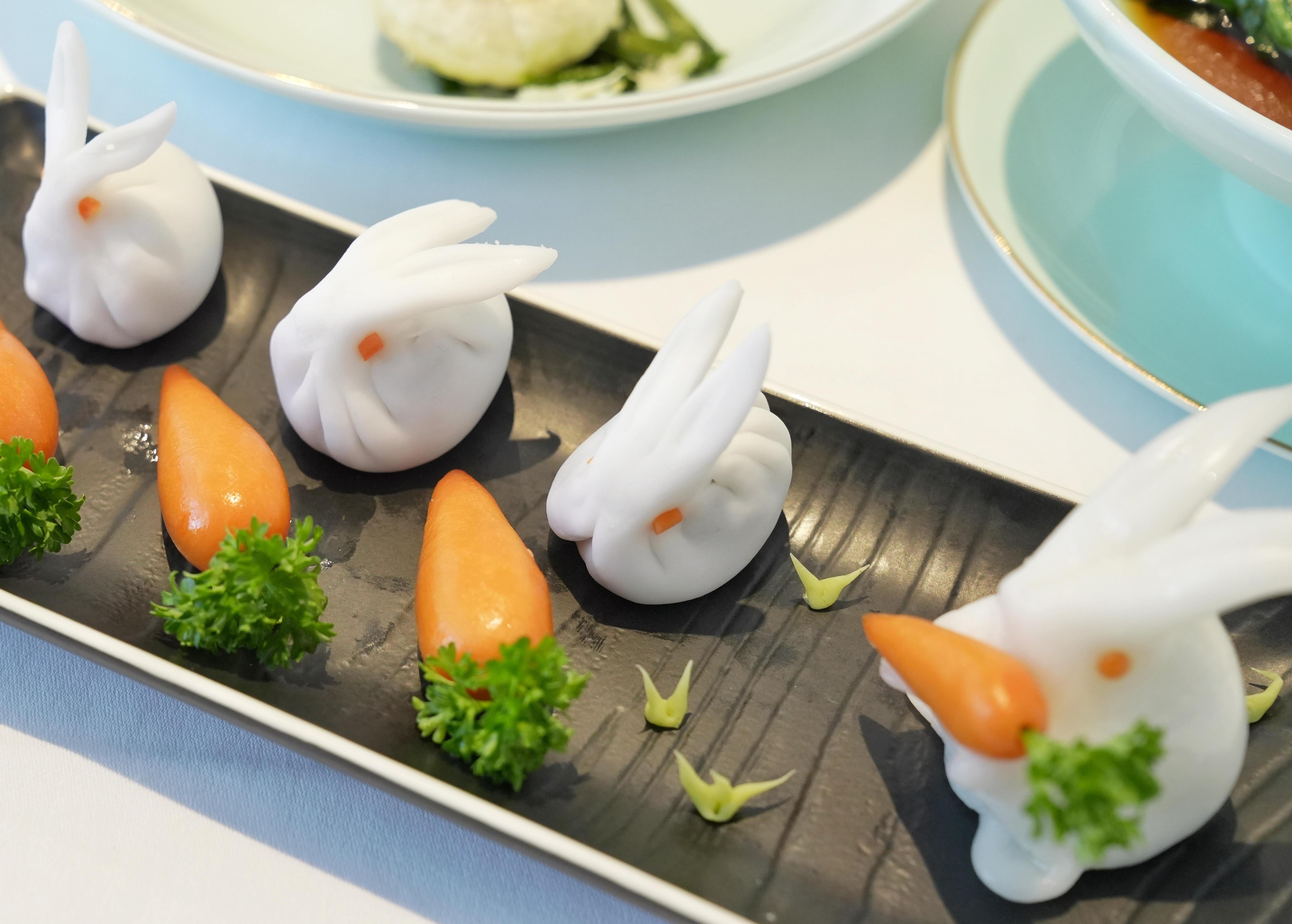 恰逢农历兔年新春来临,谭广燐还带来了“彩蛋”,现场教授制作象形白兔饺。将虾饺皮擀薄,包制馅料,捏13道褶纹,用部分虾饺皮制作出兔耳朵,以胡萝卜点睛,一只栩栩如生的象形白兔饺在谭广燐手中制作完成。