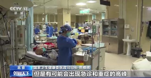 国家卫生健康委医政司司长 焦雅辉:因为我们国家人口主要还在这些大城市,人口数量大、密度也大。这些直辖市、省会城市和主要中心城市已经渡过了感染的高峰。现在有一些中小城市,包括农村,应该说感染率也已经达到了一定程度。所以我认为在春运期间、春节前后不一定是一个感染的高峰,但是有可能会出现急诊和重症的高峰。