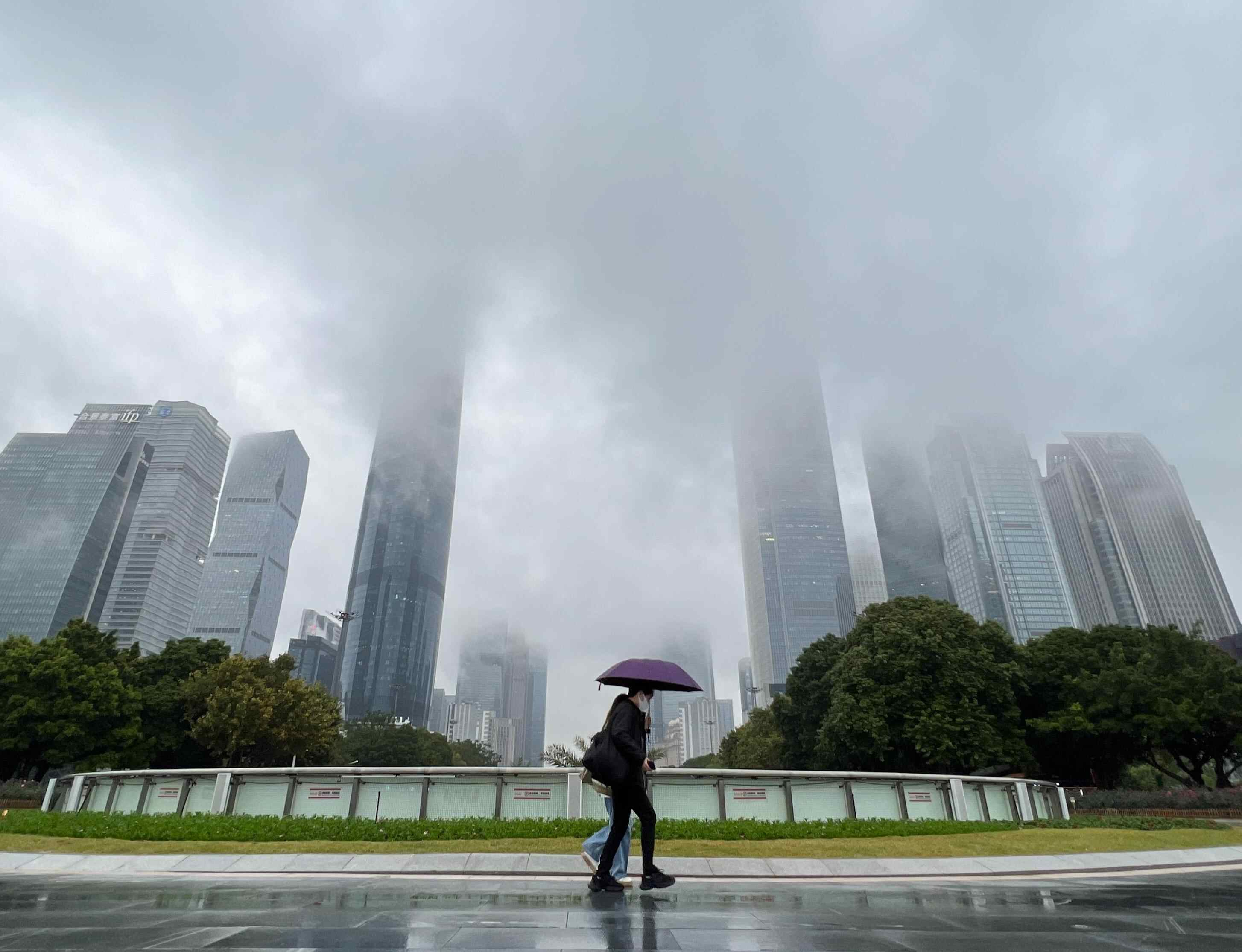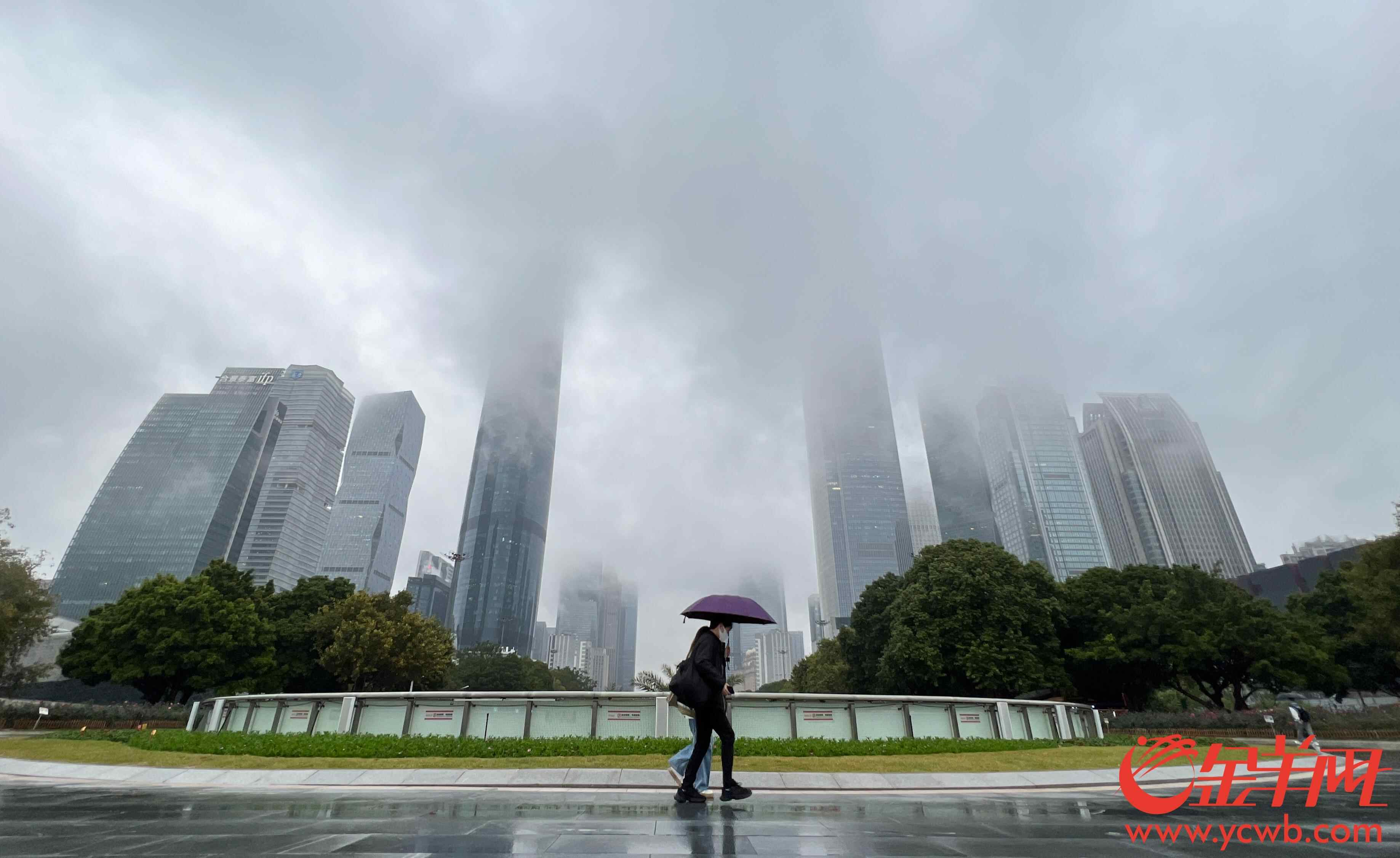 1月9日,雨雾天气下,广州珠江新城呈现“珠江仙城”景观 梁怿韬 摄