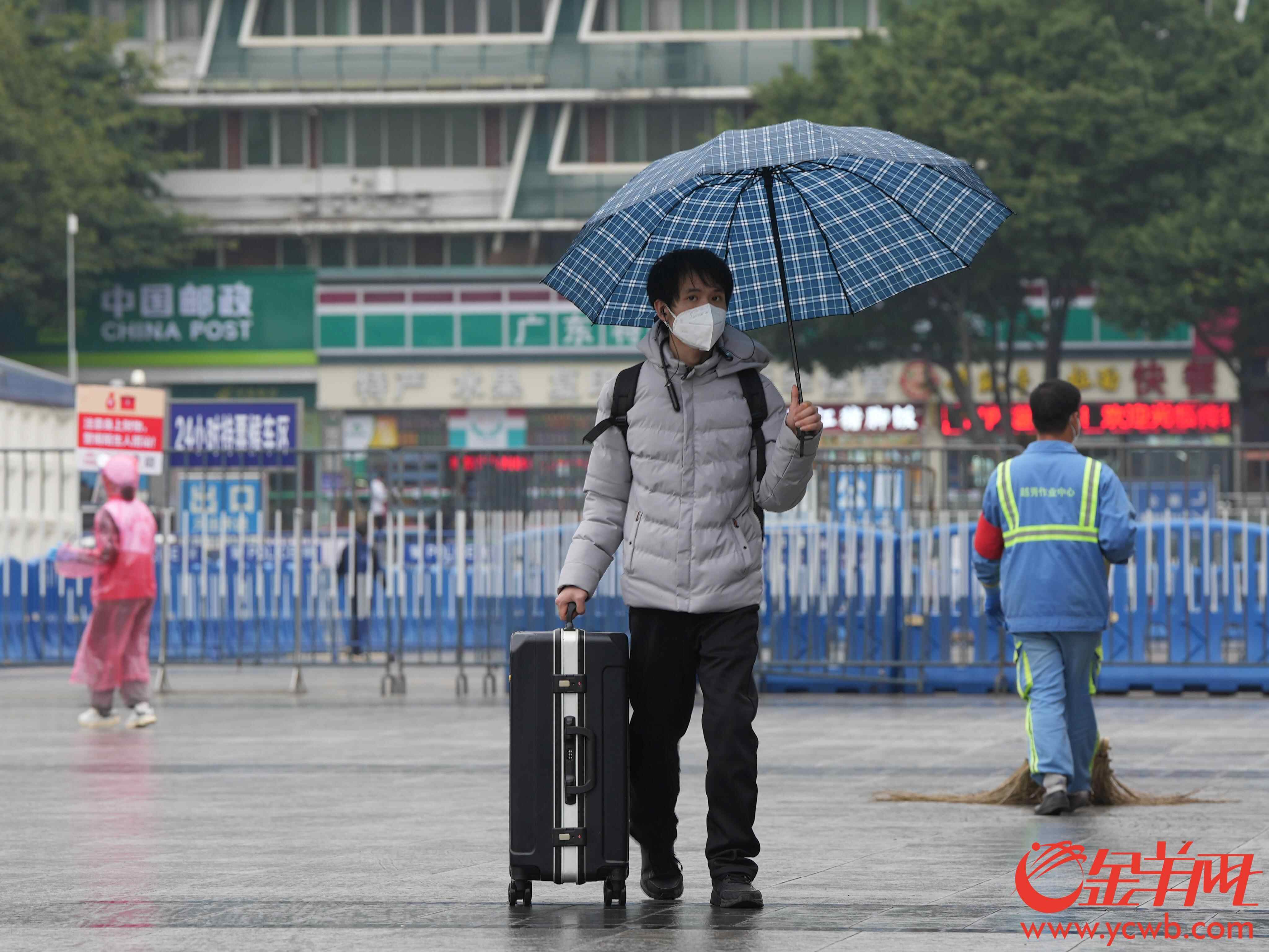 1月9日,阴雨天气下,旅客在广州火车站撑伞出行 梁怿韬 摄