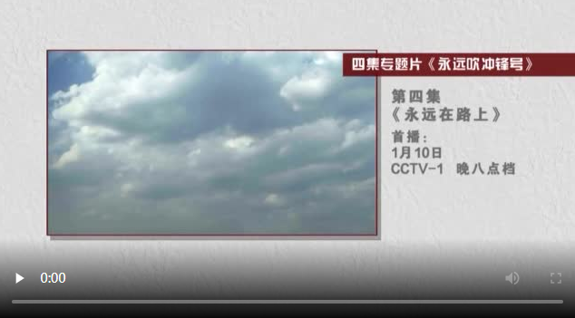 四集电视专题片《永远吹冲锋号》第四集《永远在路上》,将于1月10日在中央电视台综合频道晚8点档播出。