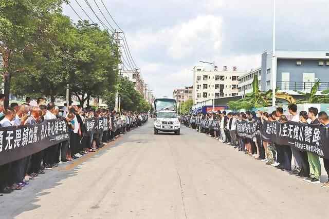 为防止周围群众遇险,黎伟标捂着冒血的右臂,将歹徒吸引至周围无人之处,继续与犯罪嫌疑人拼死肉搏,缠斗近搏中又被捅伤颈部、胸部,鲜血染红了警服,不幸壮烈牺牲,年仅41岁。