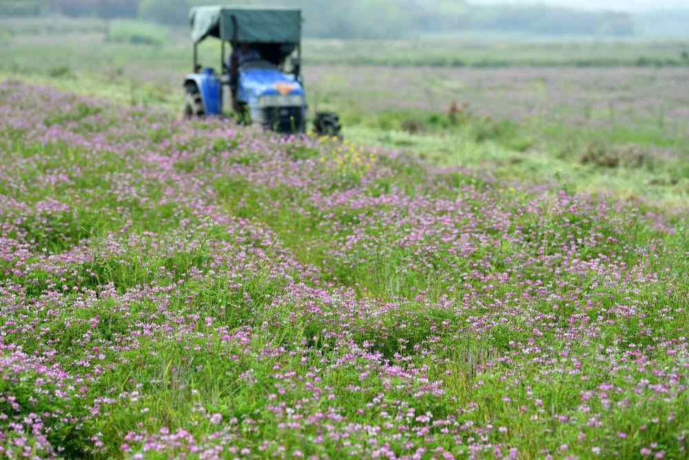 合肥市巢湖市烔炀镇的种粮大户张文建介绍,以前种地都是稻麦轮作或稻油轮作,土壤明显板结,作物产量也越来越低。“我们秋季在田里种植了紫云英,等到4月再翻入土中,能起到改良肥力、调节土壤酸碱度的效果。”