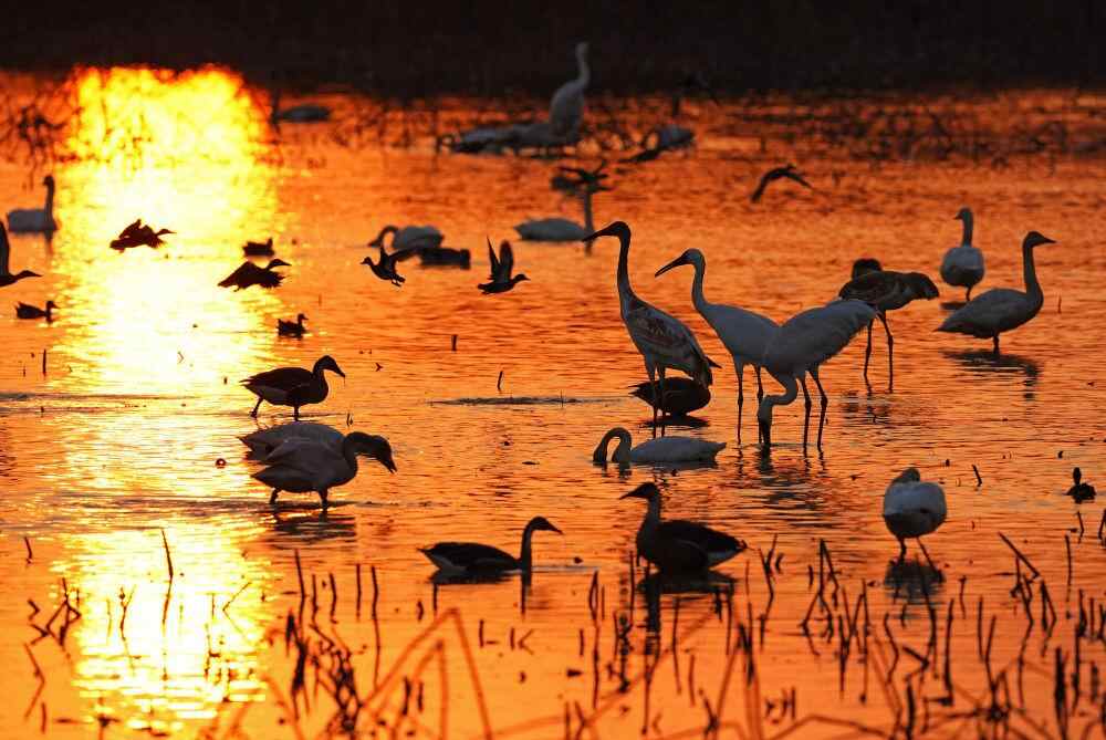 众多候鸟在江西鄱阳湖南矶湿地国家级自然保护区的湿地栖息(2022年11月11日摄)。新华社记者 万象 摄