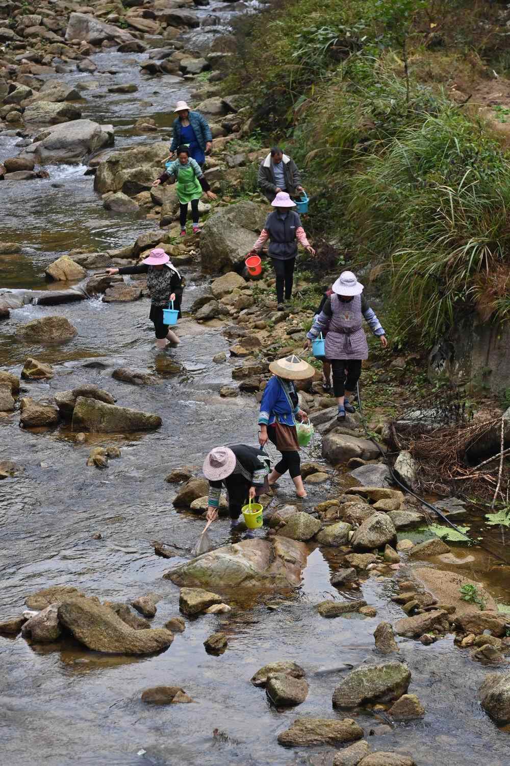 在广西融水苗族自治县杆洞乡党鸠村,村民在河长的组织下清理乌嘎河垃圾(2022年11月19日摄)。新华社记者 黄孝邦 摄